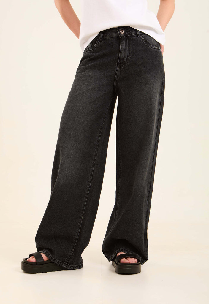 High-Waist Wide-Leg Denim Pants with Flowing Cut