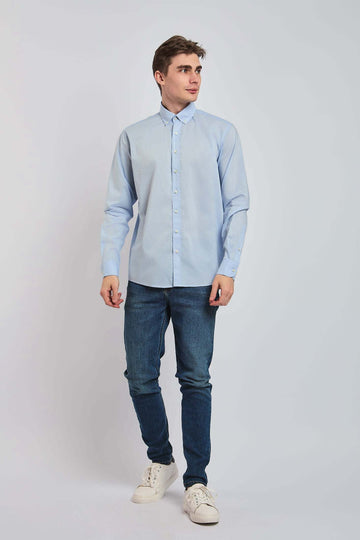 Dominate your style game with this blue poplin cotton shirt. Designed for the risk takers, it features a regular fit and long sleeves for ultimate comfort. Made with high-quality cotton, it's perfect for any adventure. Get ready to conquer the day in style!